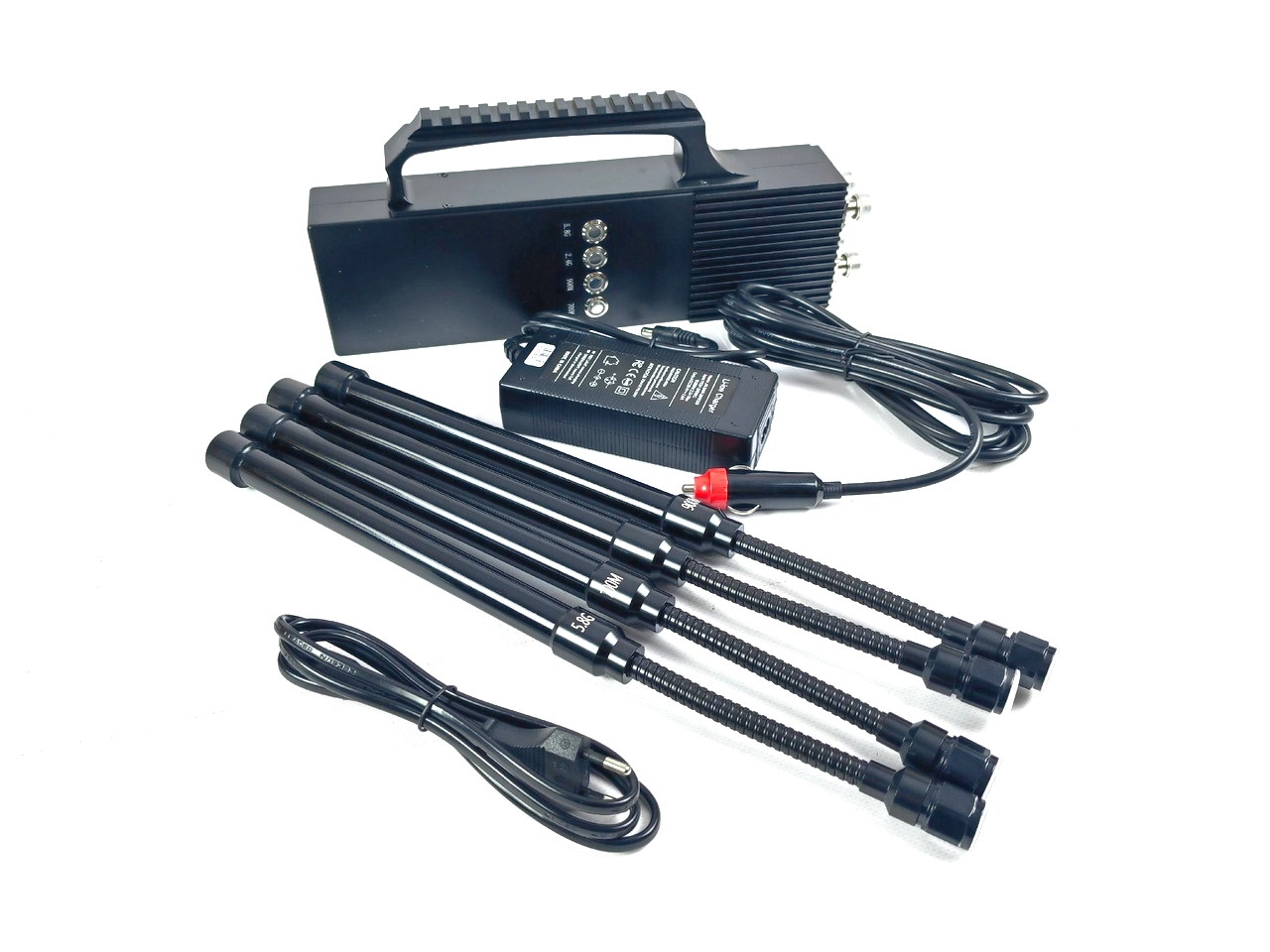 Комплект поставки: Портативный РЭБ Телтос Гард-4, антенны 4шт, зарядное устройство 220 вотльт, кабель питания 24В.
